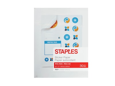 Staples sticker paper 8 5 w x 11 h white matte 30 pack 70972 421.